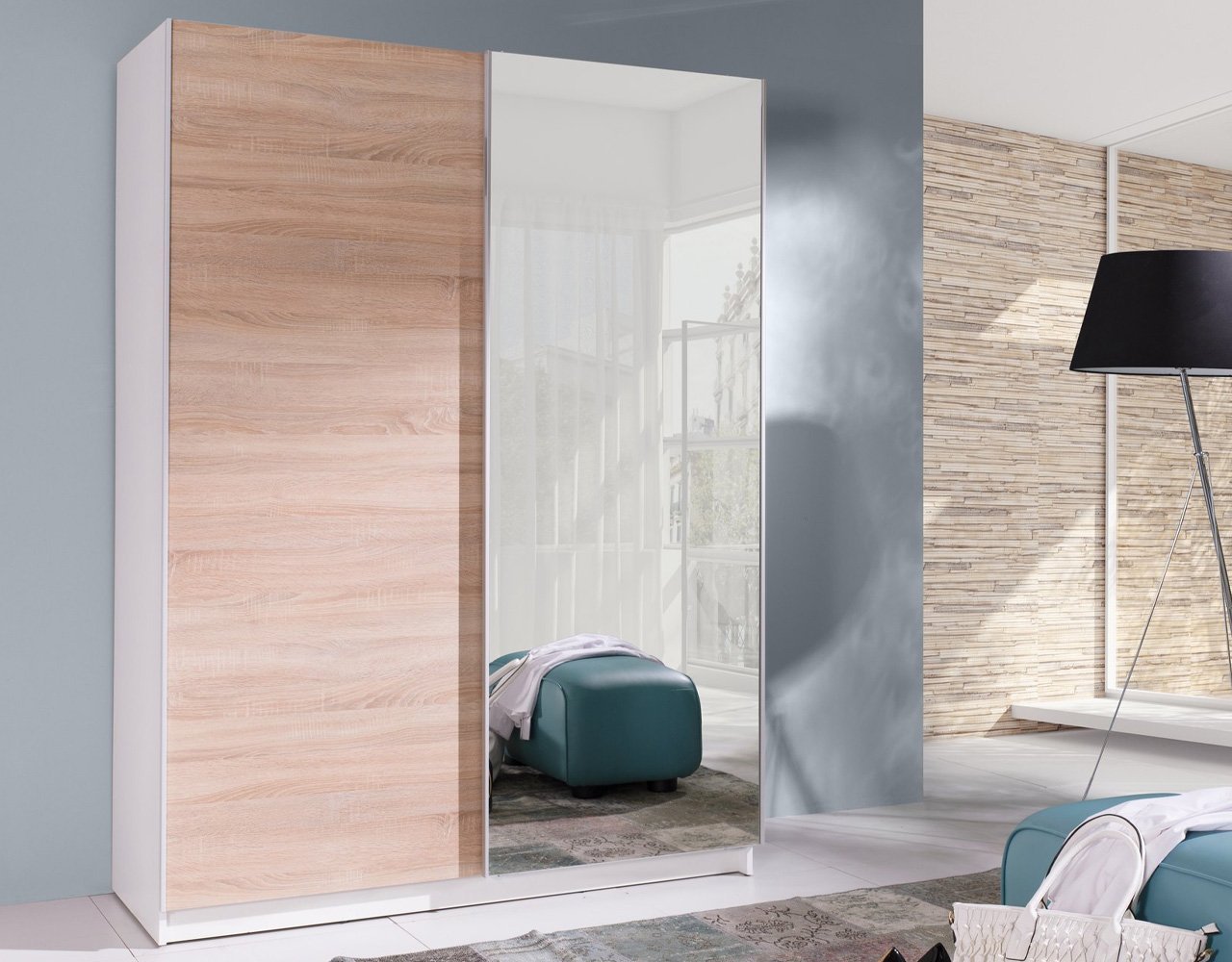 Szafa przesuwna BASILIO 150cm z lustrem