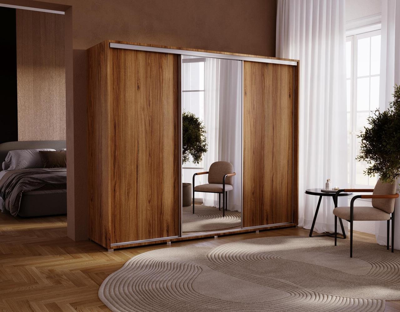 Szafa przesuwna SANTO trzydrzwiowa z lustrem, szafa do sypialni 255 cm