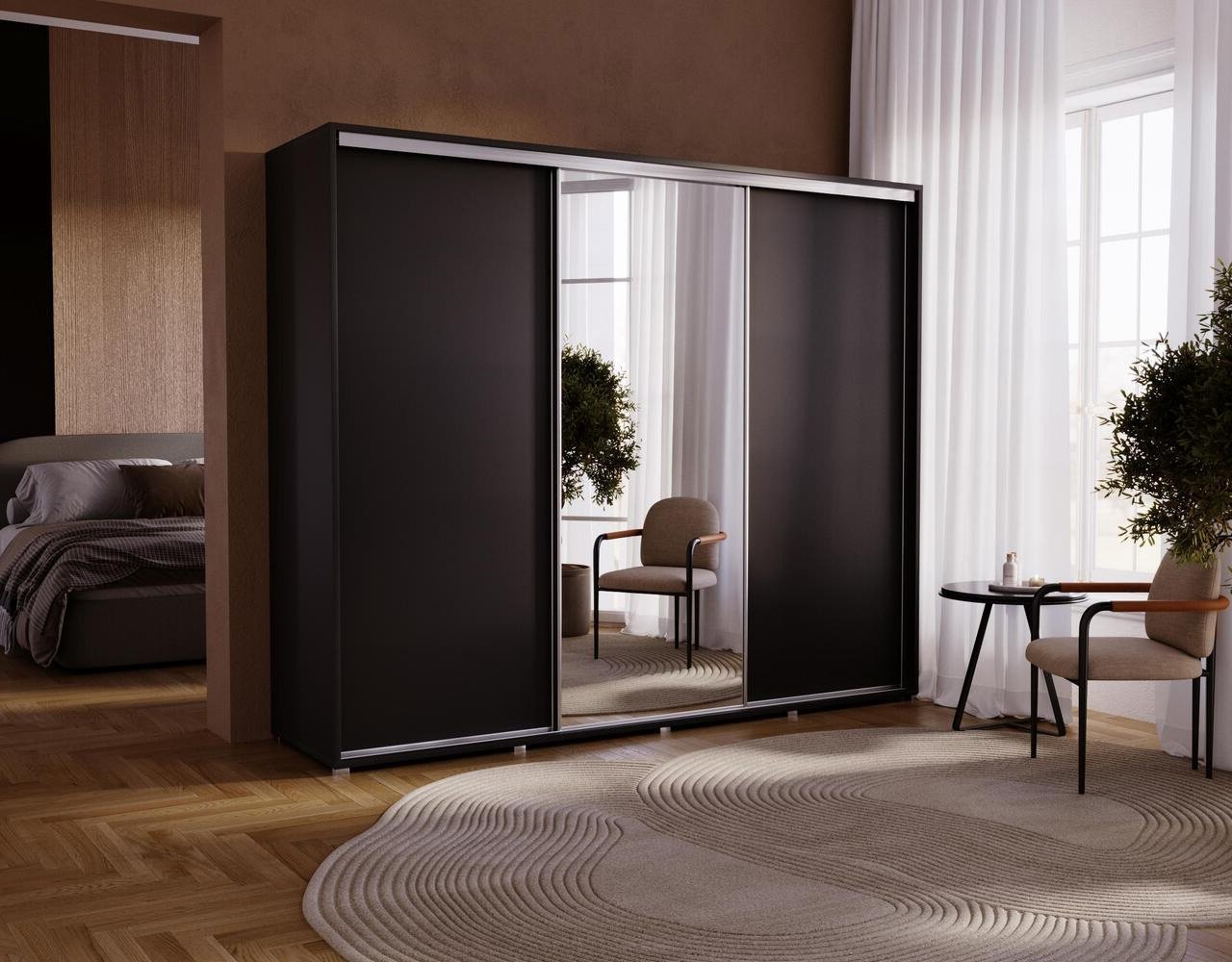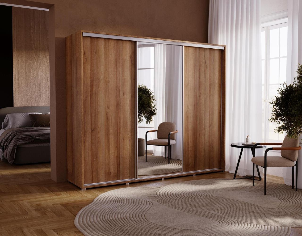 Szafa przesuwna SANTO trzydrzwiowa z lustrem, szafa do sypialni 255 cm