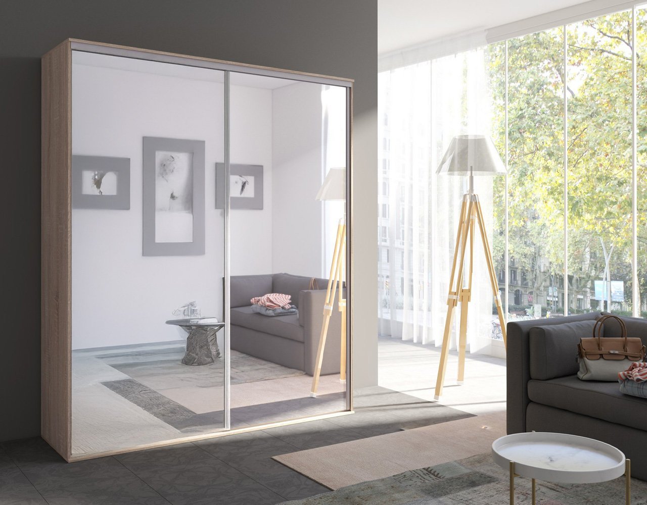 Szafa przesuwna, dwudrzwiowa z drążkiem i wieloma półkami. 5 kolorów, 204cm z lustrami.