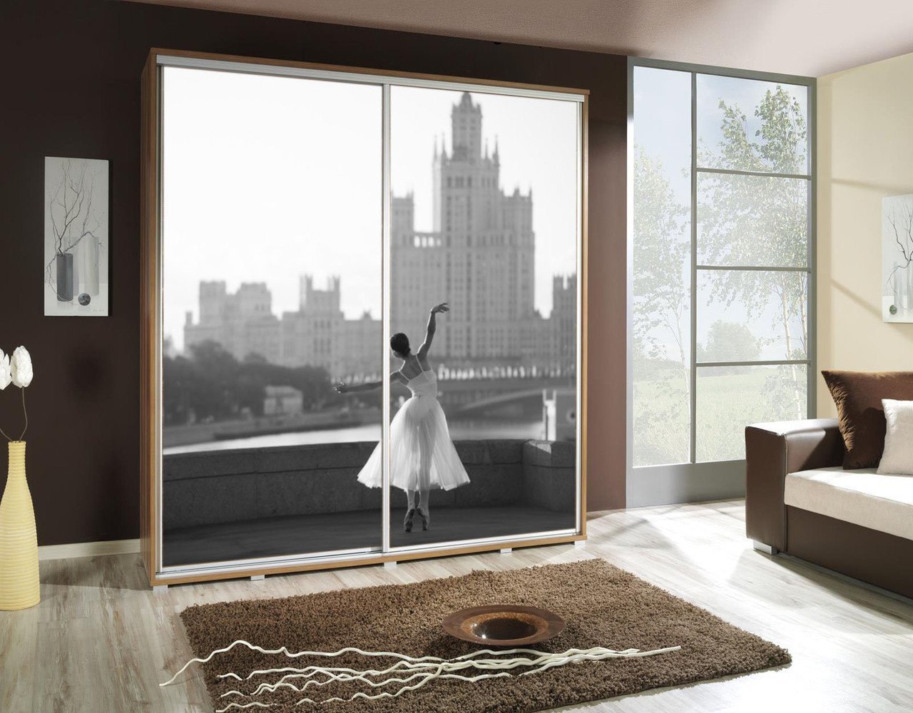 Szafa z grafiką, nadrukiem dwudrzwiowa 205cm - BALETNICA 2 - tancerka na tle miasta.