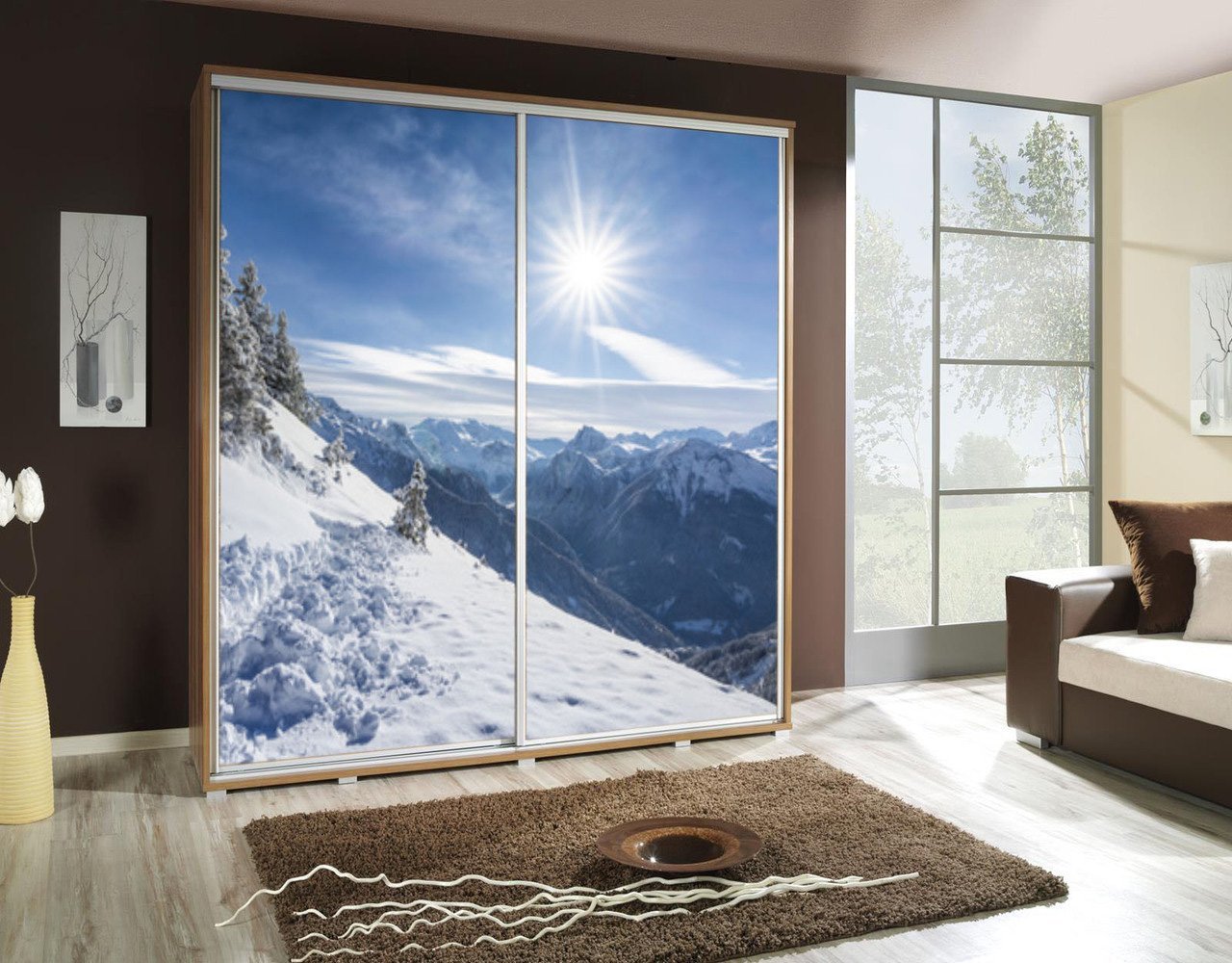 Szafa z grafiką, nadrukiem dwudrzwiowa 205cm - ZIMA 2 - krajobraz, góry, śnieg.