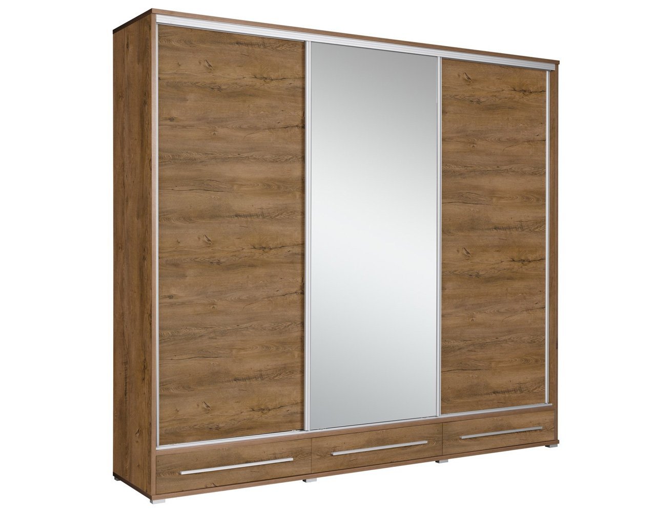 Szafa przesuwna HERMANO 255cm trzydrzwiowa z lustrem i 3 szufladami